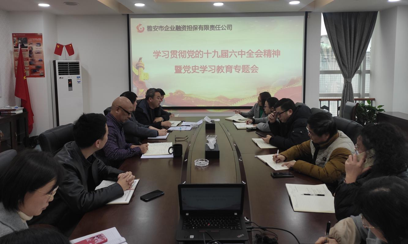 會(huì)議指出,學(xué)習(xí)貫徹黨的十九屆六中全會(huì)精神是當(dāng)前和今后一個(gè)時(shí)期的一項(xiàng)重要的政治任務(wù)。全體黨員干部要充分認(rèn)識(shí)黨的十九屆六中全會(huì)的重大意義,準(zhǔn)確把握全會(huì)精神實(shí)質(zhì)和豐富內(nèi)涵,增強(qiáng)“四個(gè)意識(shí)”,堅(jiān)定“四個(gè)自信”,做到“兩個(gè)維護(hù)”。要把學(xué)習(xí)黨的十九屆六中全會(huì)精神貫穿到黨史學(xué)習(xí)教育中去,把全會(huì)精神落實(shí)到服務(wù)中小微企業(yè)和三農(nóng)的具體實(shí)踐中、體現(xiàn)到推動(dòng)公司高質(zhì)量發(fā)展的創(chuàng)新舉措上。
