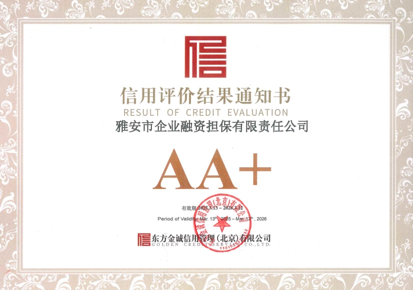 日前,東方金誠(chéng)信用管理(北京)有限公司在對(duì)市擔(dān)保公司的信用狀況進(jìn)行綜合分析和評(píng)估的基礎(chǔ)上,正式出具了評(píng)價(jià)報(bào)告,授予市擔(dān)保公司AA+評(píng)價(jià)等級(jí)。